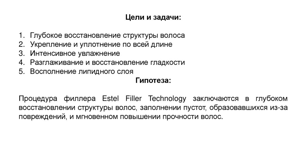 Цели и задачи:1. Глубокое восстановление структуры волоса