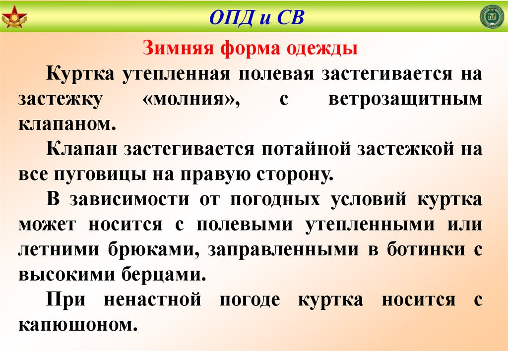 военных кафедр ВУЗов разрешается ношение военной одежды