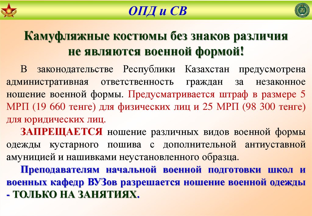 ЗАПРЕЩАЕТСЯ ношение различных видов военной формы