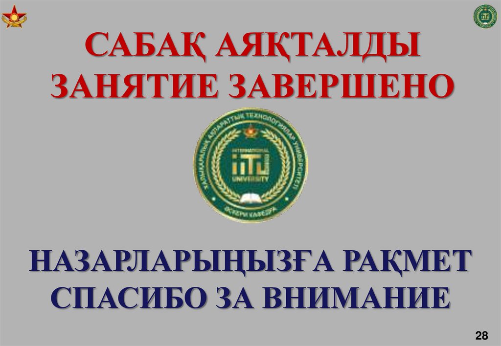 САБАҚ АЯҚТАЛДЫЗАНЯТИЕ ЗАВЕРШЕНО