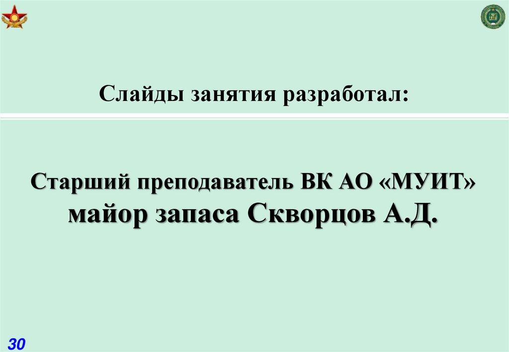 Слайды занятия разработал:Старший преподаватель ВК АО «МУИТ»