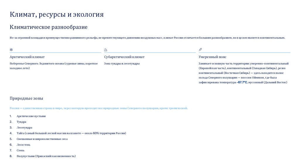 Россия — единственная страна в мире, через которую проходят все природные зоны Северного полушария, кроме тропической.