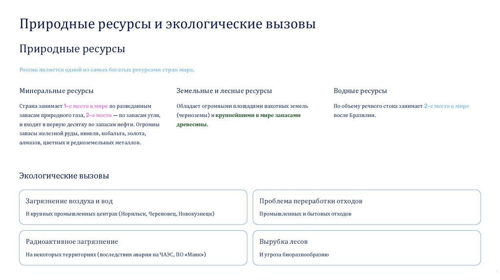 Природные ресурсы и экологические вызовыПриродные ресурсы