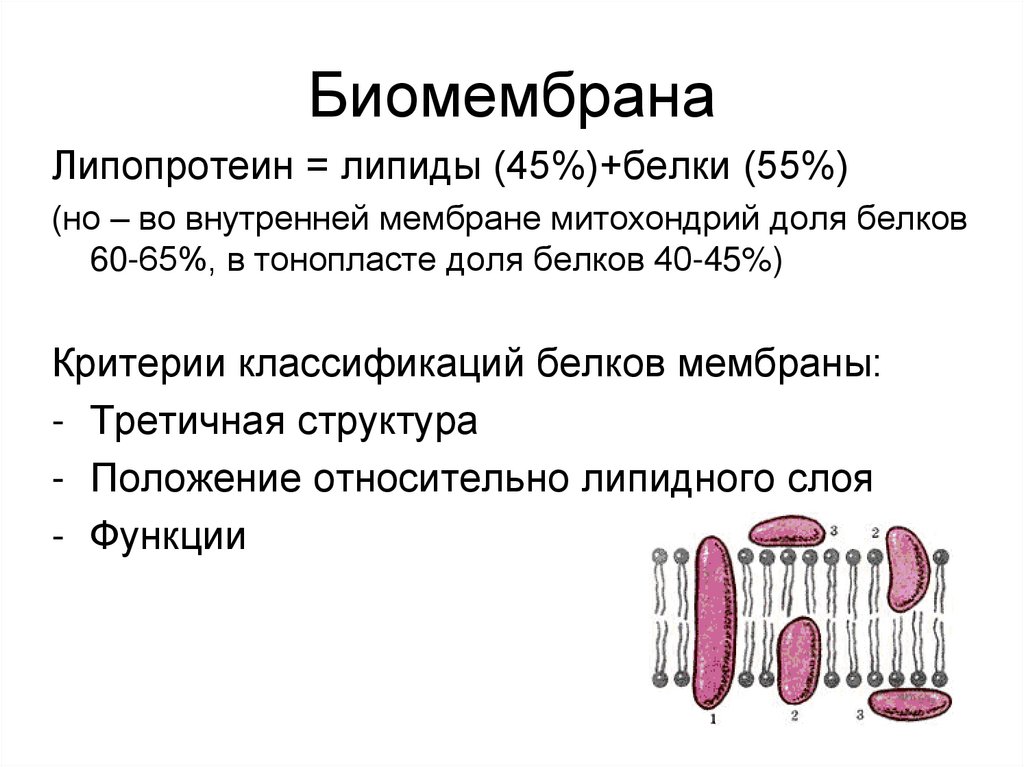 Липопротеин = липиды (45%)+белки (55%)(но – во внутренней мембране митохондрий доля белков