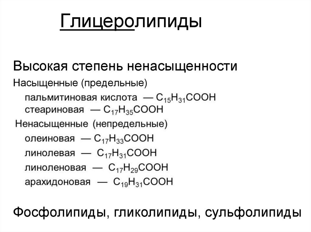 ГлицеролипидыВысокая степень ненасыщенности