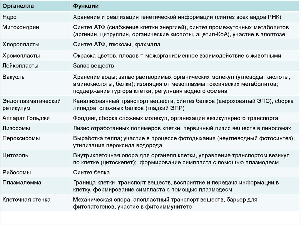 • 1. Знать химизм, структурную организацию ифункции основных органелл и структур растительной