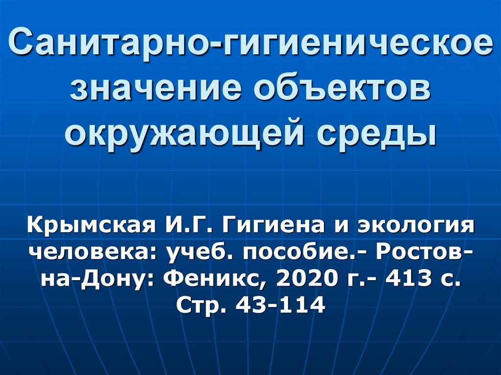 1. Санитарно-гигиеническое значение объектов окружающей среды