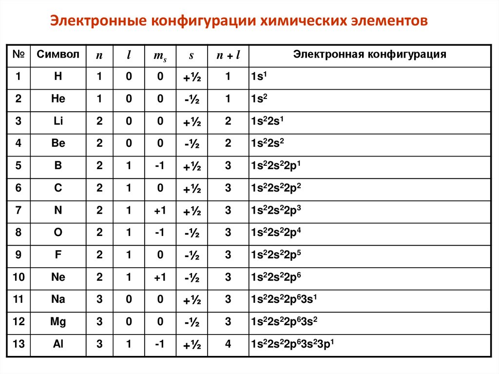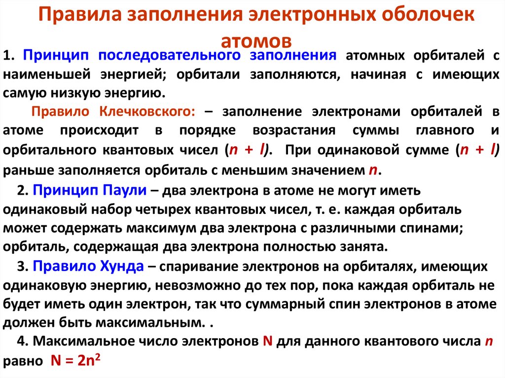 орбитального квантовых чисел (n + l). При одинаковой сумме (n + l)