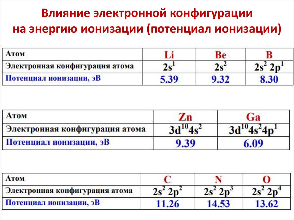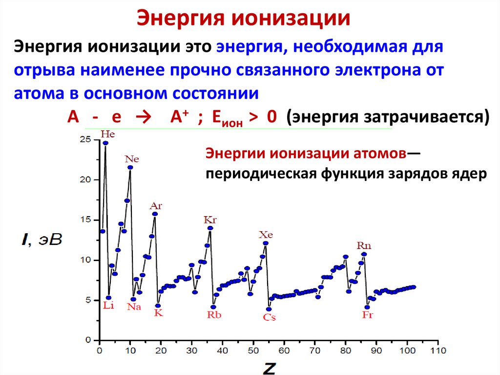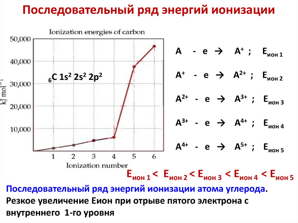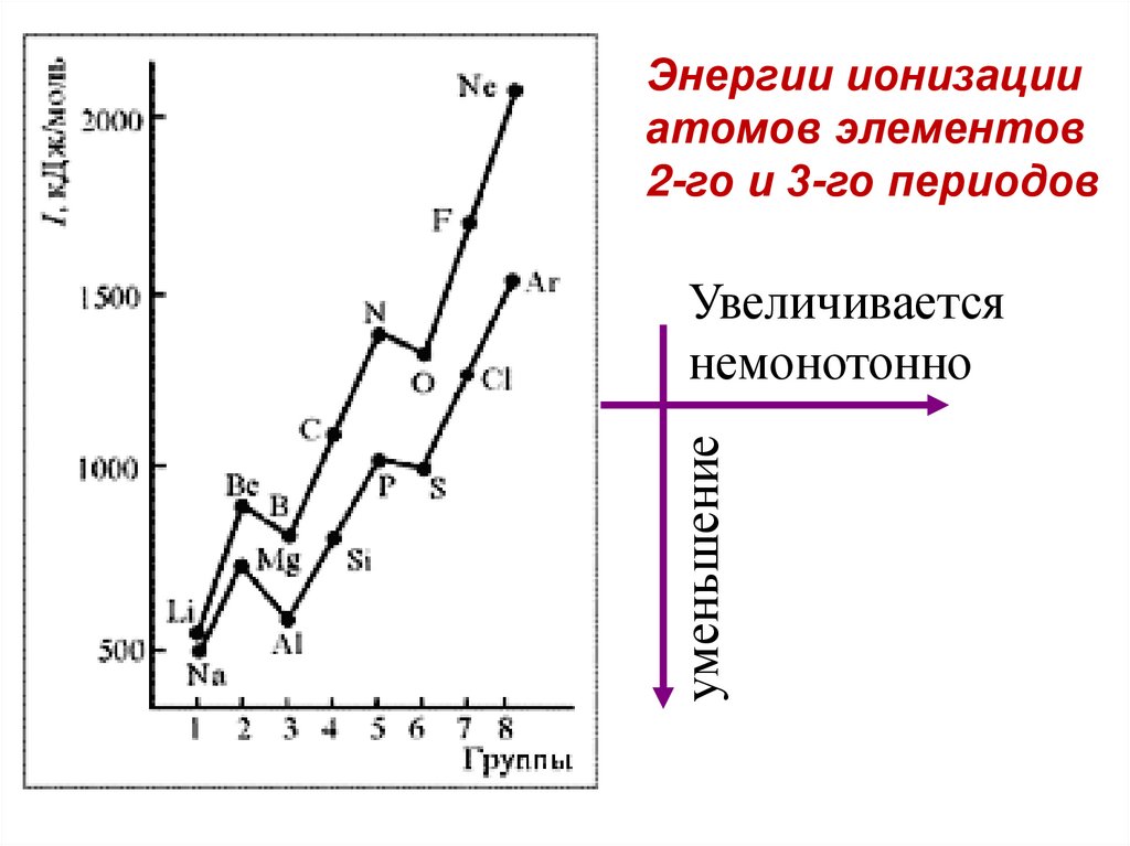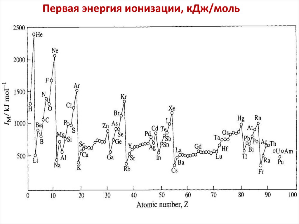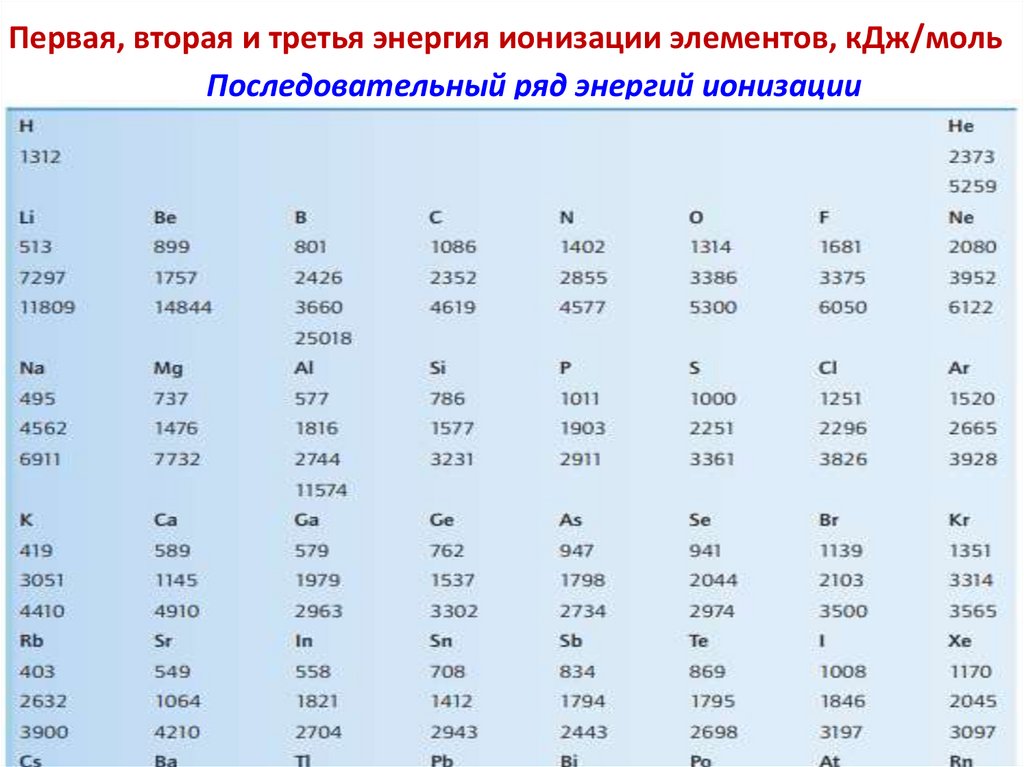 Первая, вторая и третья энергия ионизации элементов, кДж/мольПоследовательный ряд энергий ионизации