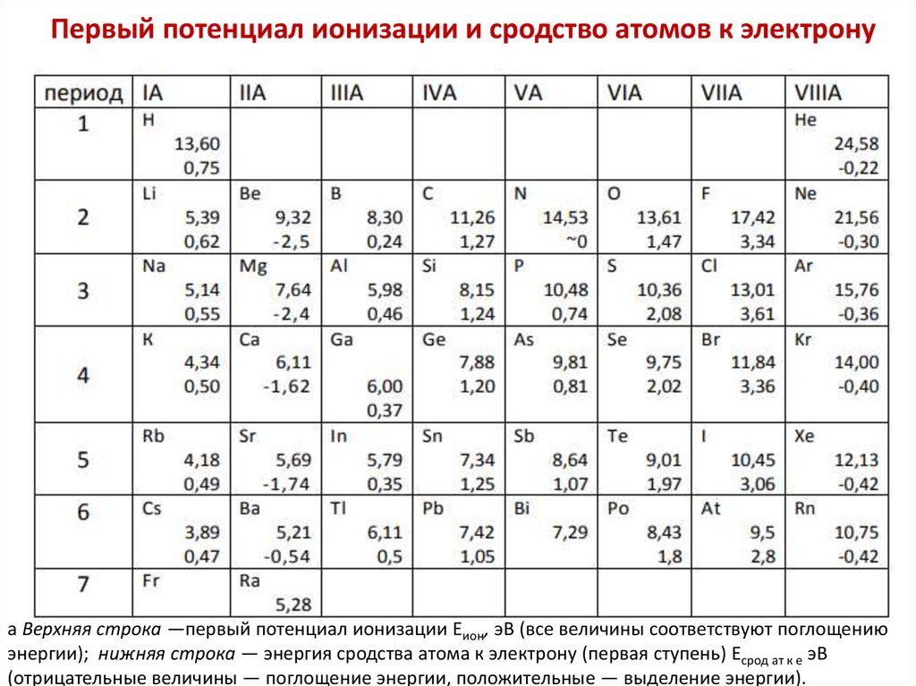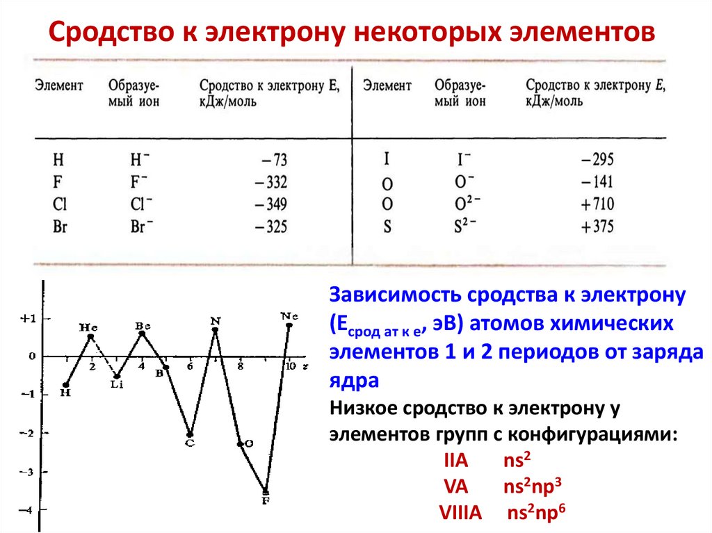 Сродство к электрону некоторых элементовЗависимость сродства к электрону