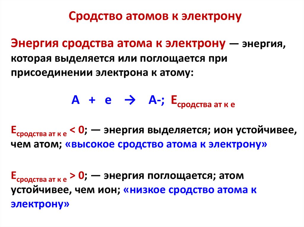 Сродство атомов к электронуЭнергия сродства атома к электрону — энергия,