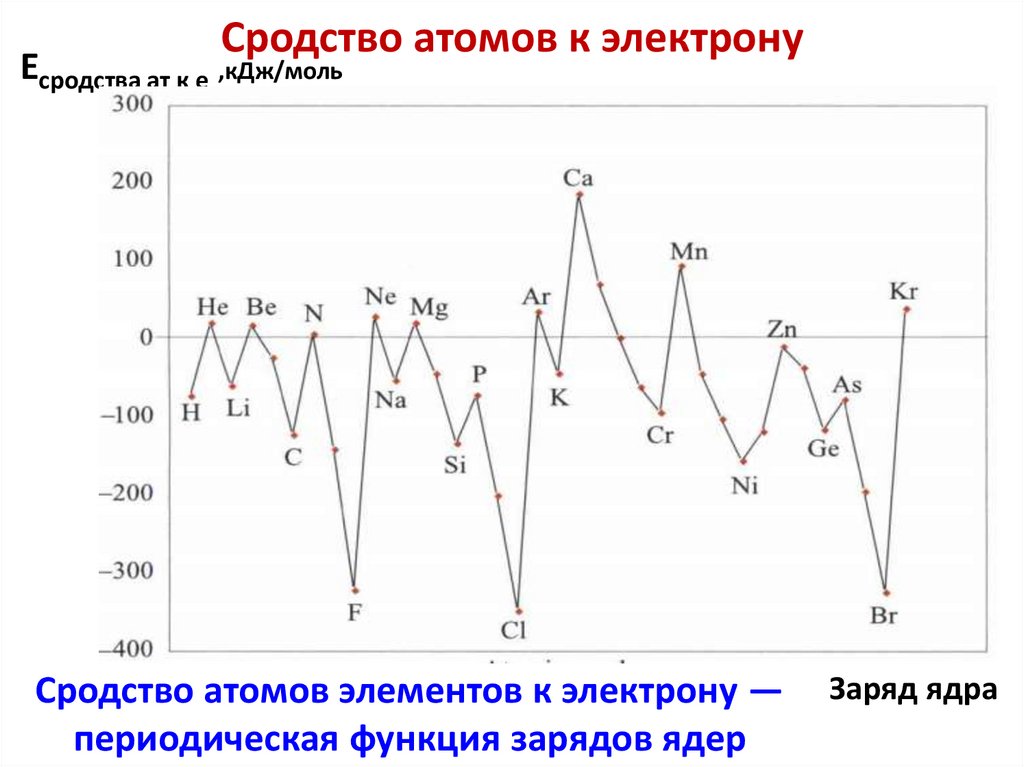 Сродство атомов к электронуЕсродства ат к е ,кДж/моль