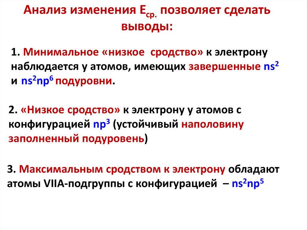Есродства ат к е < 0; — энергия выделяется; ион устойчивее,