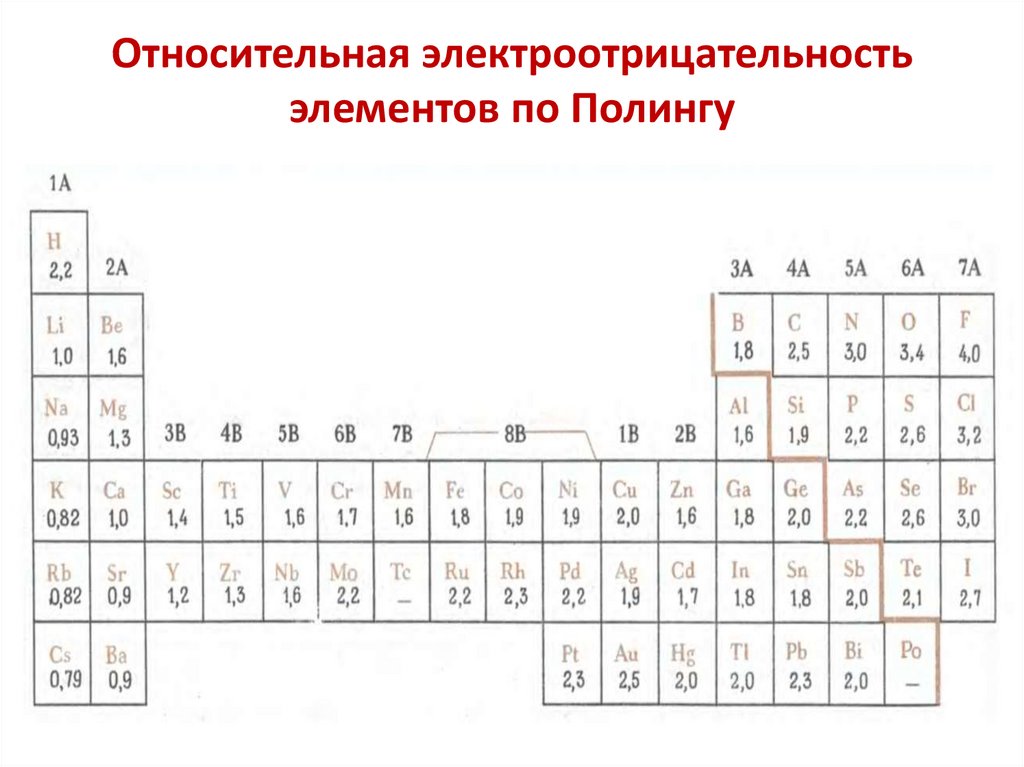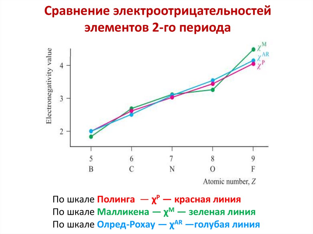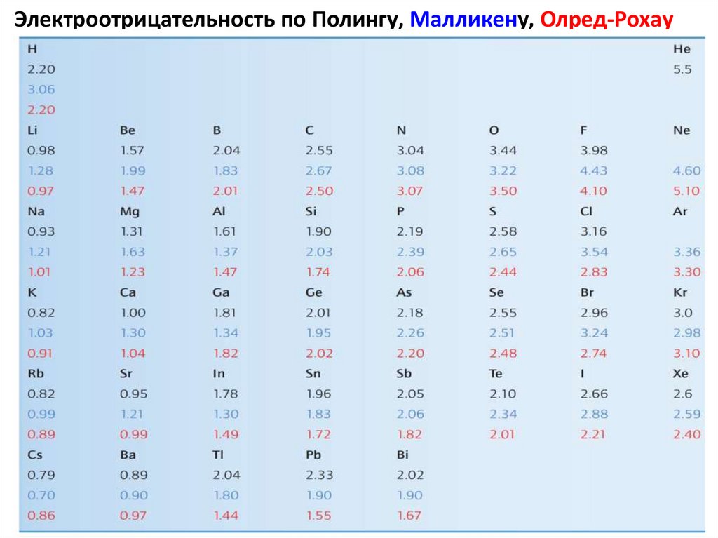 Электроотрицательность по Полингу, Малликену, Олред-Рохау50.