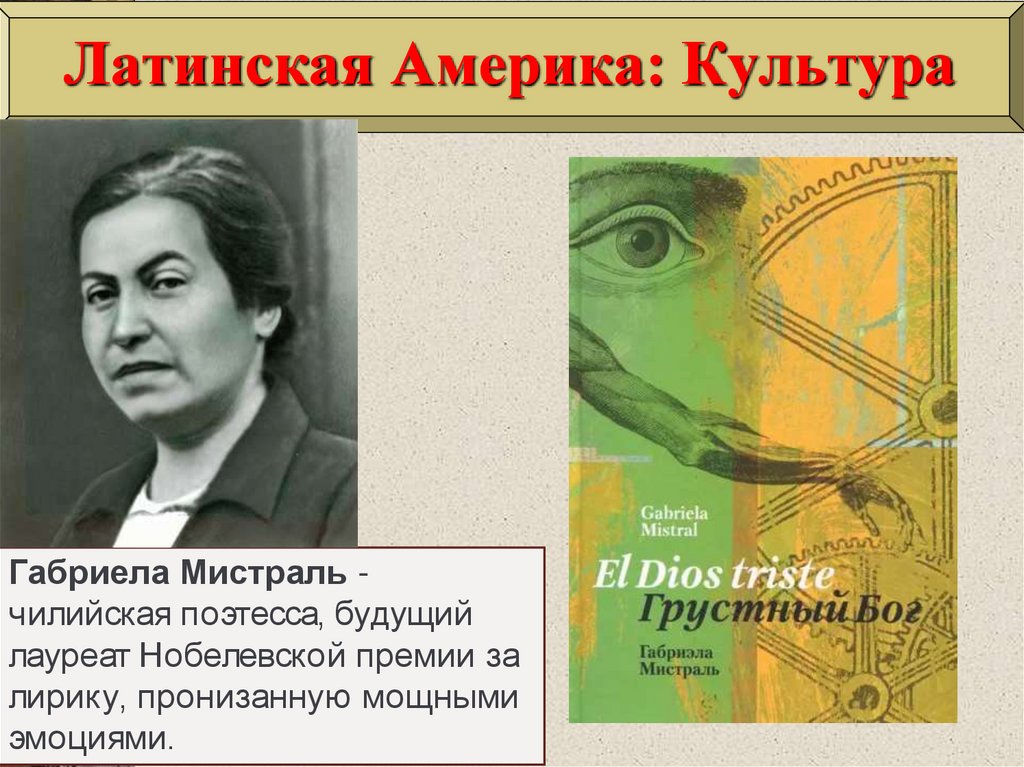 Латинская Америка: КультураГабриела Мистраль чилийская поэтесса, будущий