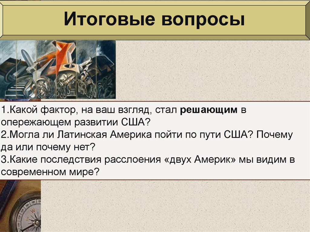 Итоговые вопросы1.Какой фактор, на ваш взгляд, стал решающим в
