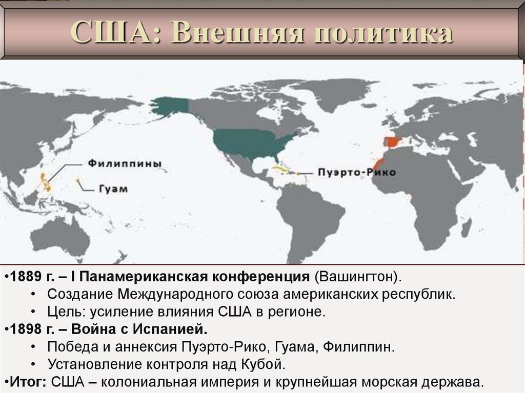 •Итог: США – колониальная империя и крупнейшая морская держава.