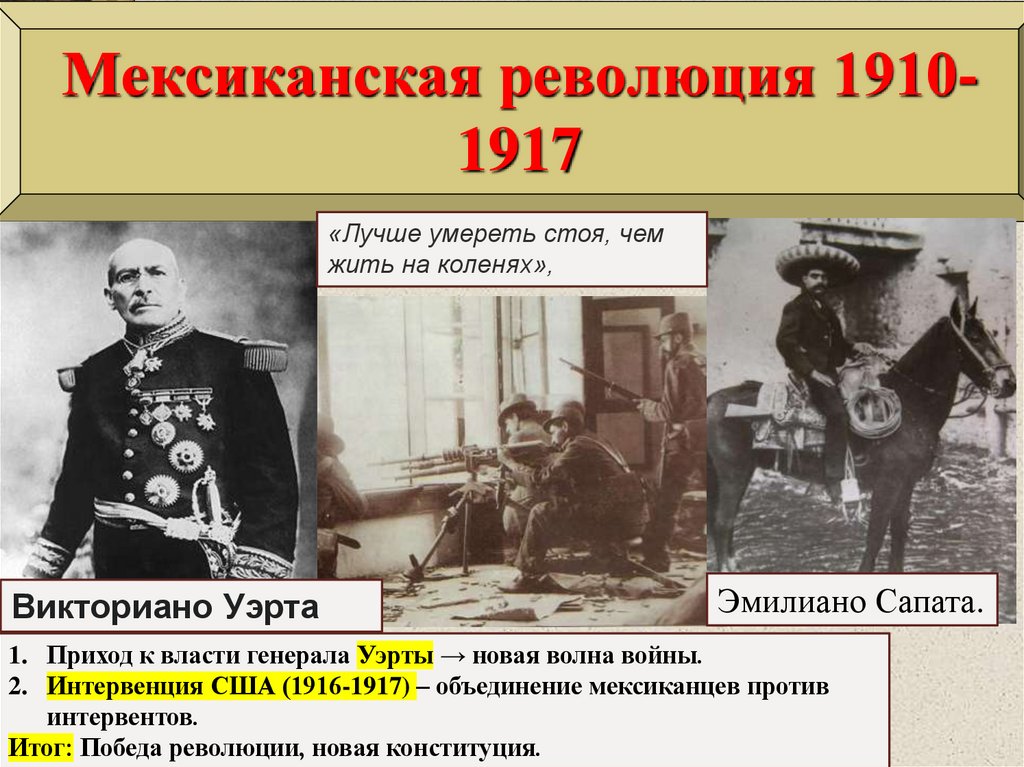 Мексиканская революция 19101917«Лучше умереть стоя, чем