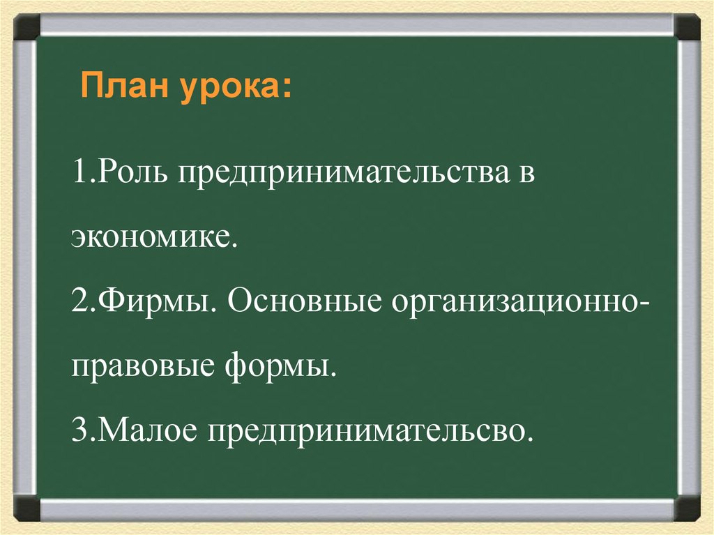 План урока:1.Роль предпринимательства в