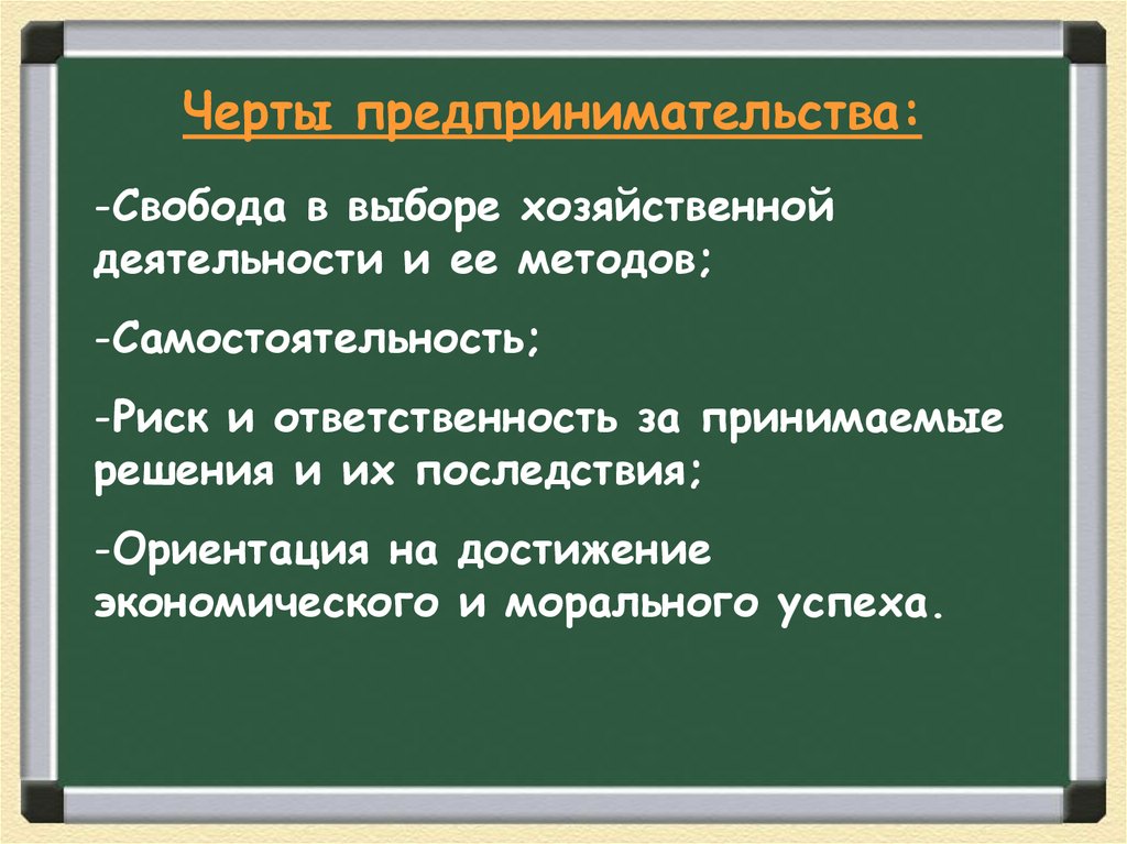 Черты предпринимательства:-Свобода в выборе хозяйственной