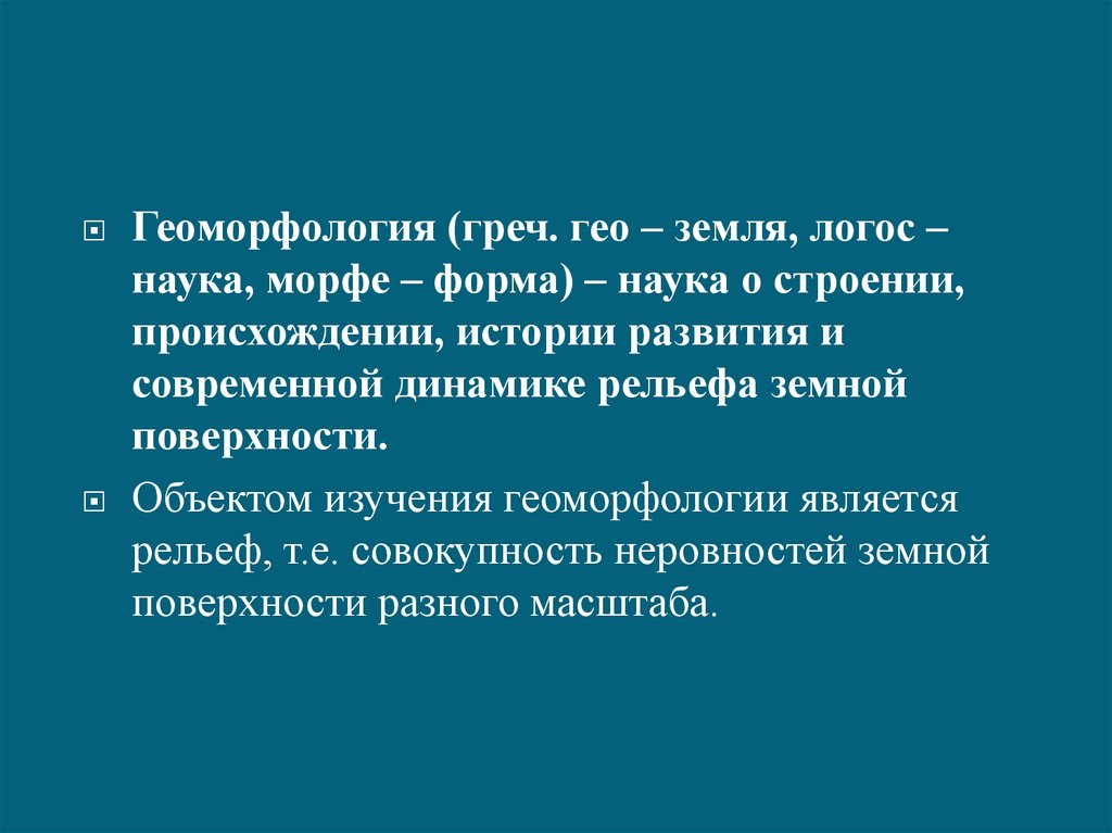 Геоморфология (греч. гео – земля, логос –наука, морфе – форма) – наука о строении,