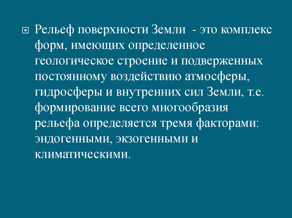 Главный исходный тезис современнойгеоморфологии – рельеф формируется в результате