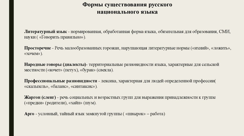 Тема 3. Русский язык в Российской Федерации и в современном мире.Формы существования русского национального языка. Активные процессы в