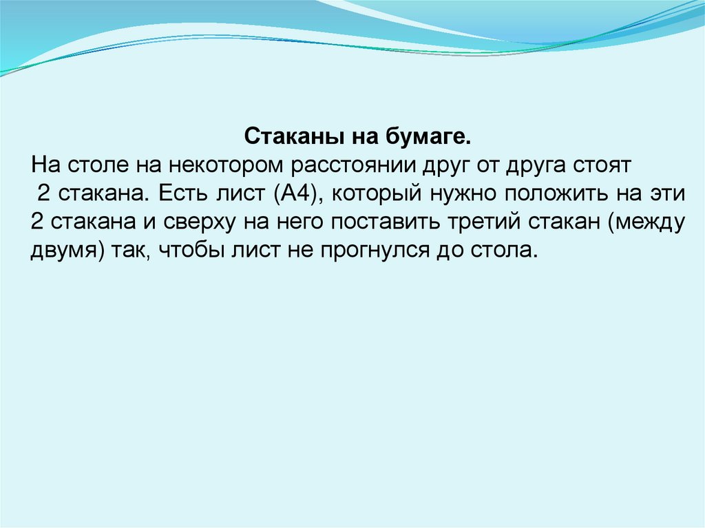 2 стакана. Есть лист (А4), который нужно положить на эти