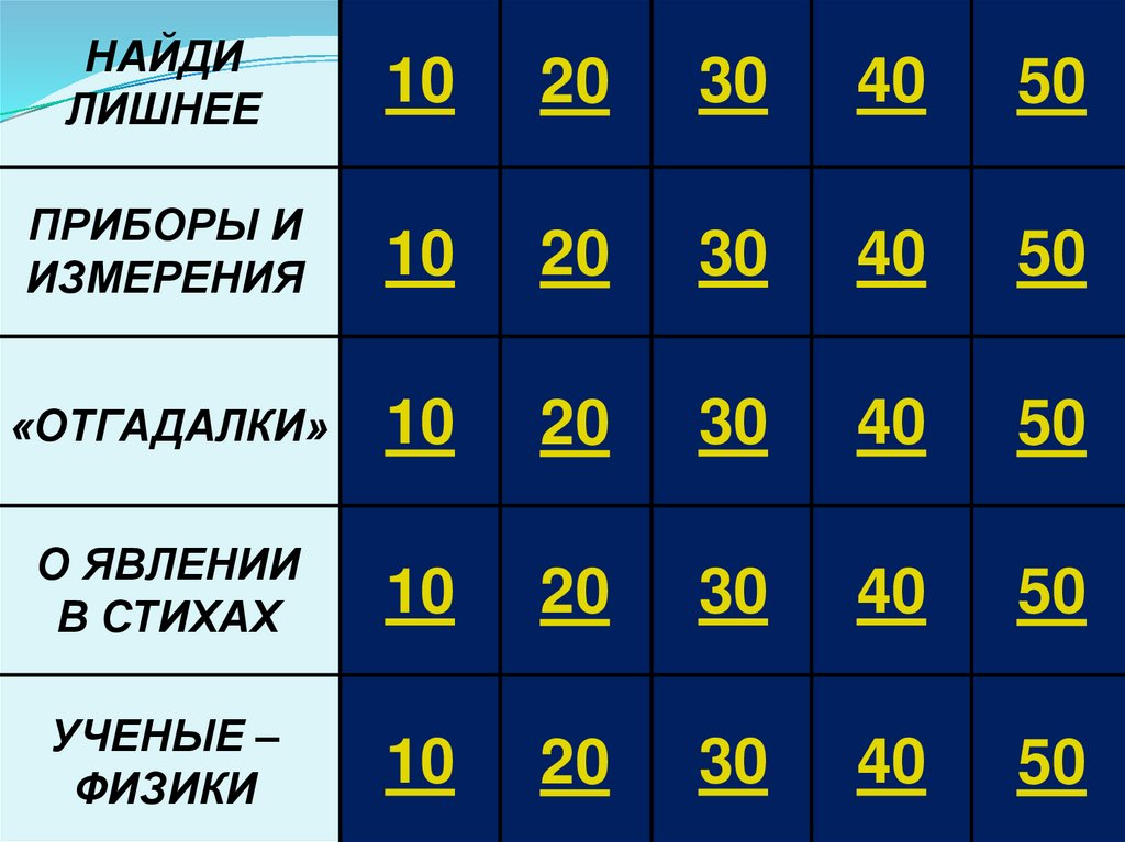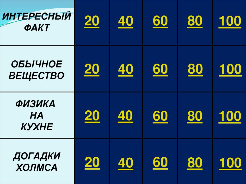 столе. Если игрок отвечает правильно, то стоимость вопроса