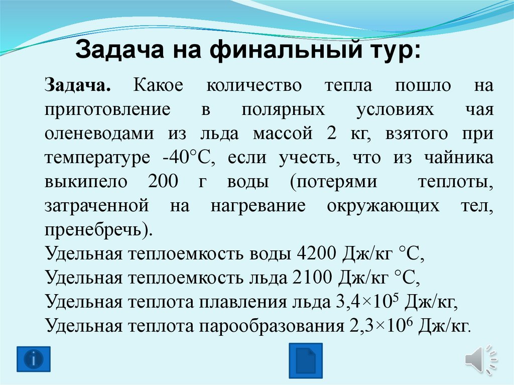 Задача на финальный тур:Задача. Какое количество тепла пошло на