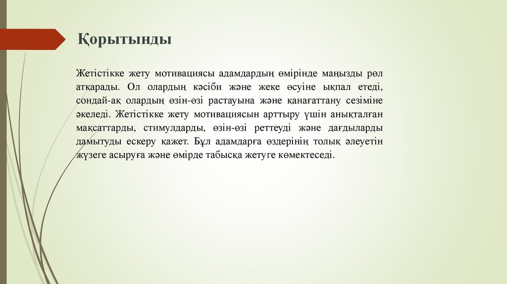 ҚорытындыЖетістікке жету мотивациясы адамдардың өмірінде маңызды рөл