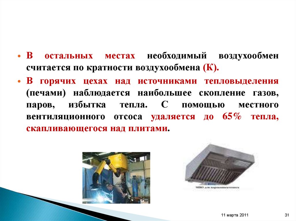 В остальных местах необходимый воздухообменсчитается по кратности воздухообмена (К).