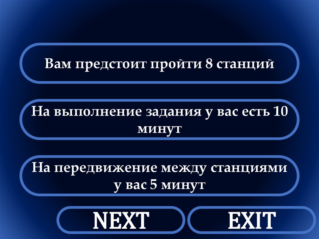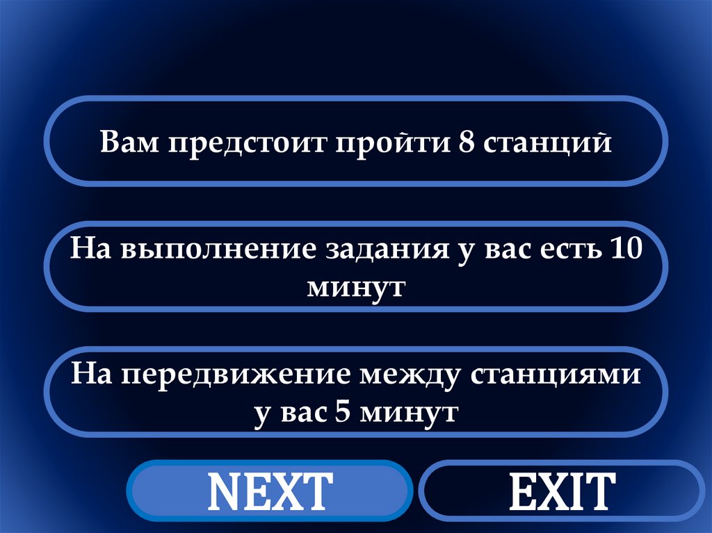 Вам предстоит пройти 8 станцийНа выполнение задания у вас есть 10