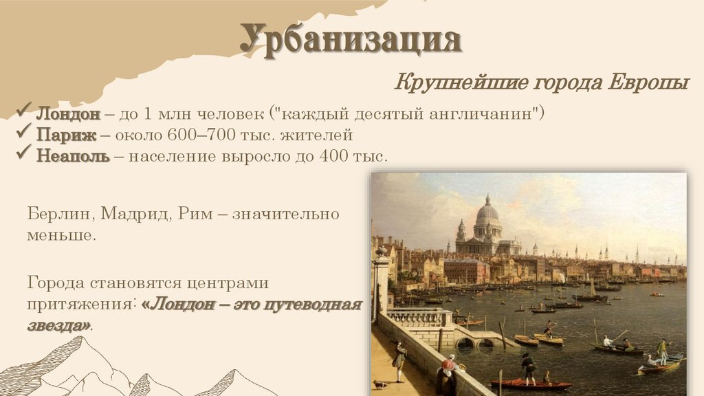 Крупнейшие города ЕвропыЛондон – до 1 млн человек ("каждый десятый англичанин")