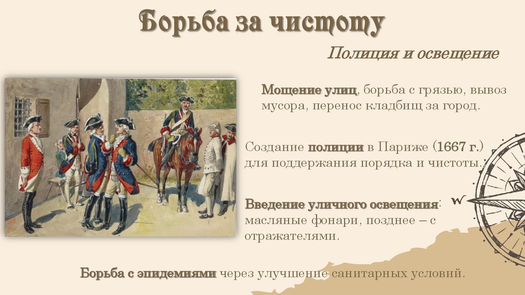 Полиция и освещениеМощение улиц, борьба с грязью, вывоз