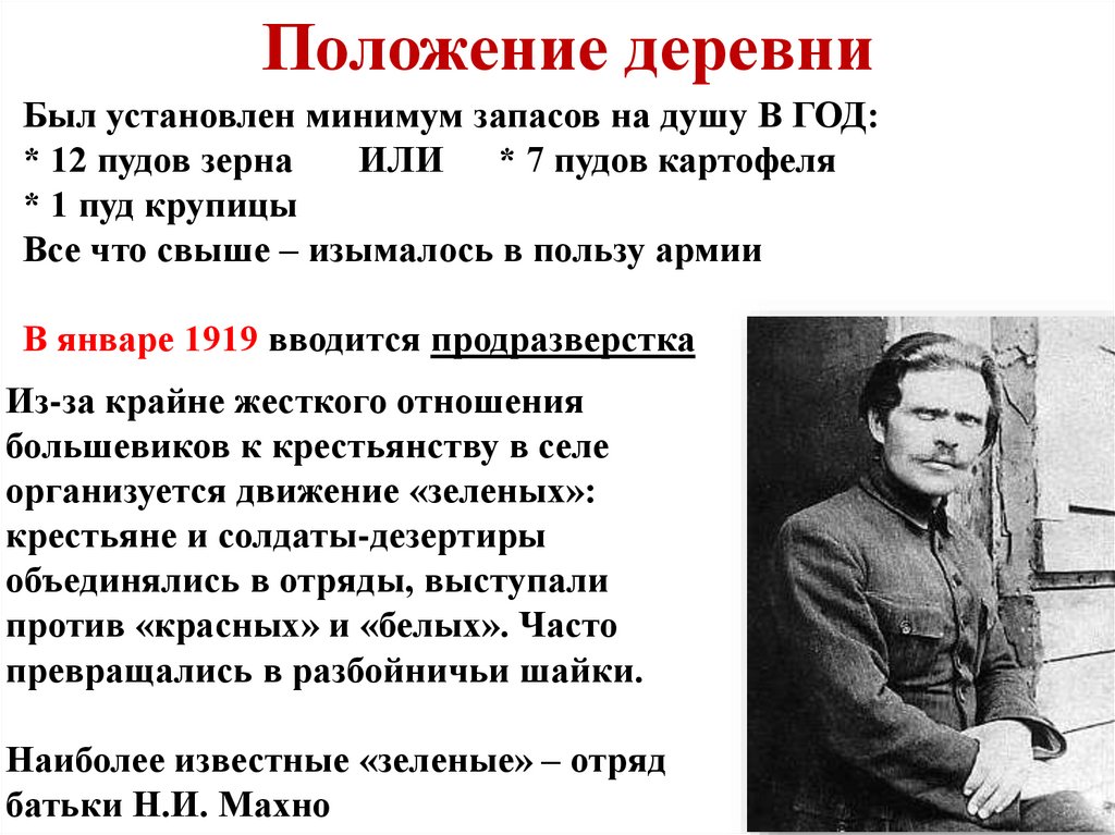 25. Крестьянство вынуждено смириться с политикой большевиков, не желая возвращения старых порядков