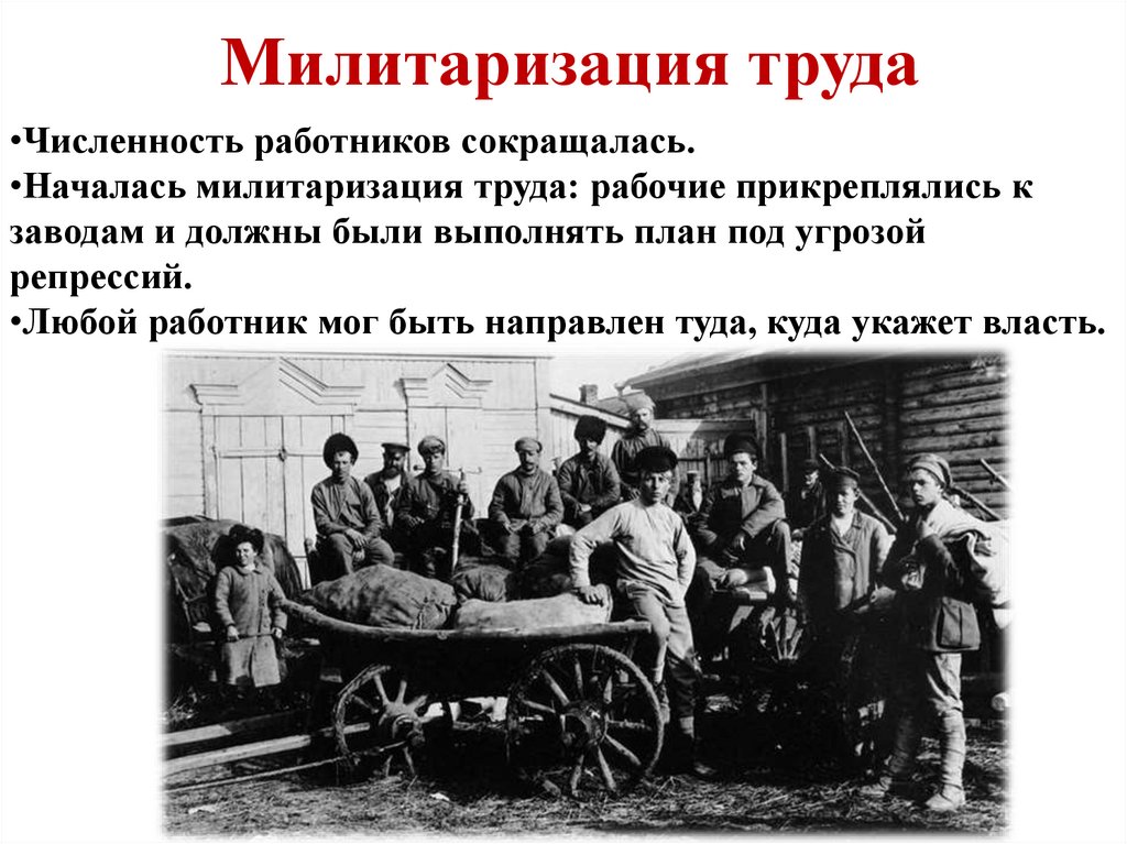 Милитаризация труда•Численность работников сокращалась.