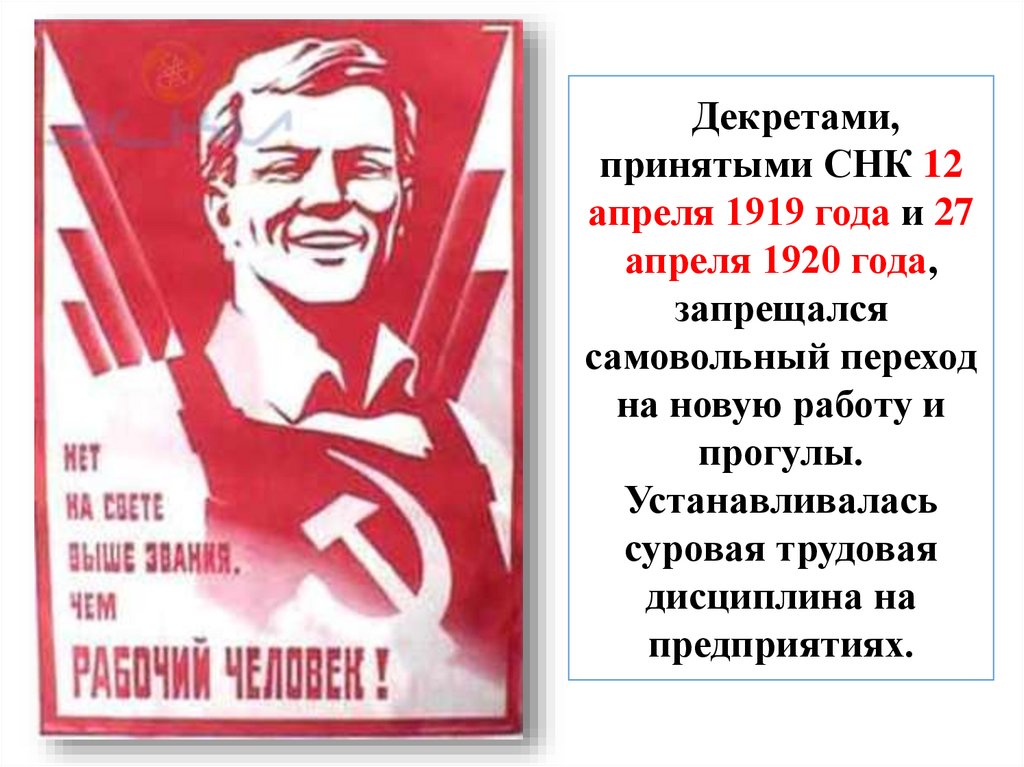•Началась милитаризация труда: рабочие прикреплялись к