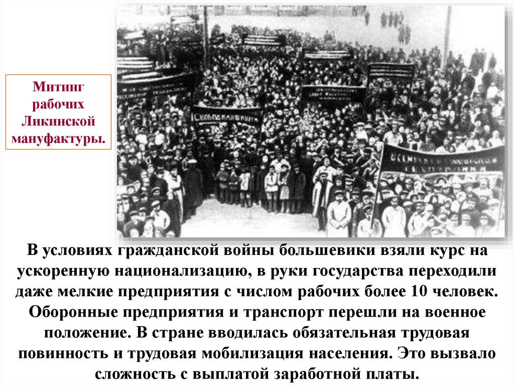 В условиях гражданской войны большевики взяли курс на