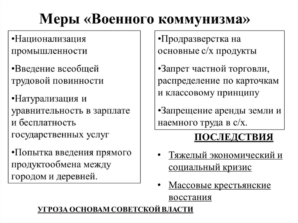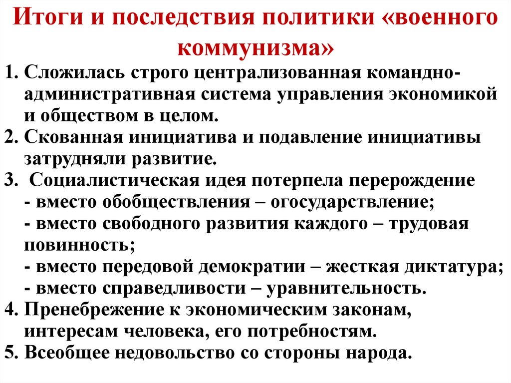 Итоги и последствия политики «военногокоммунизма»