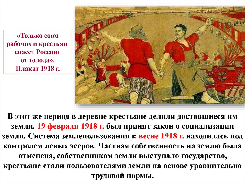 земли. 19 февраля 1918 г. был принят закон о социализации