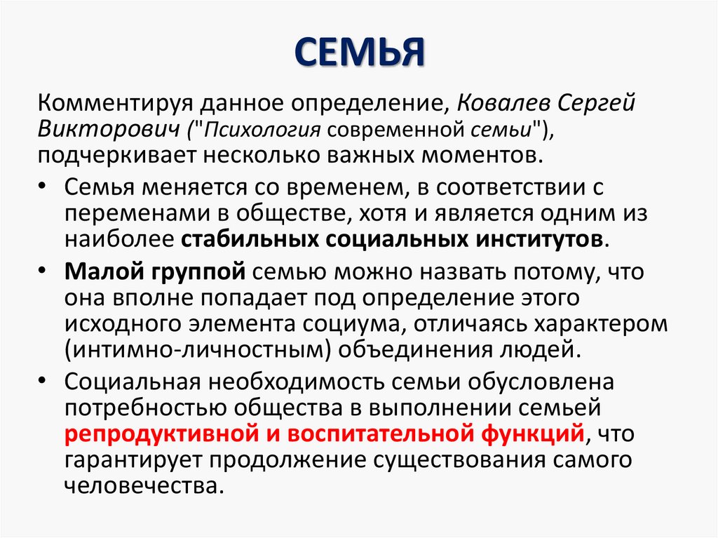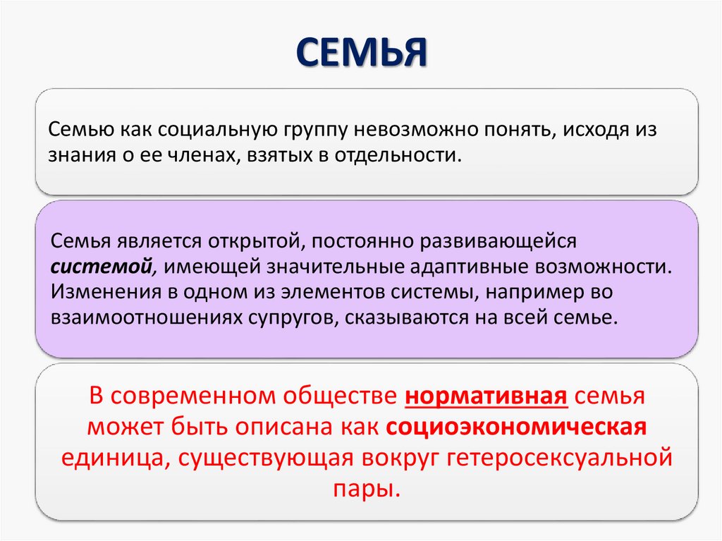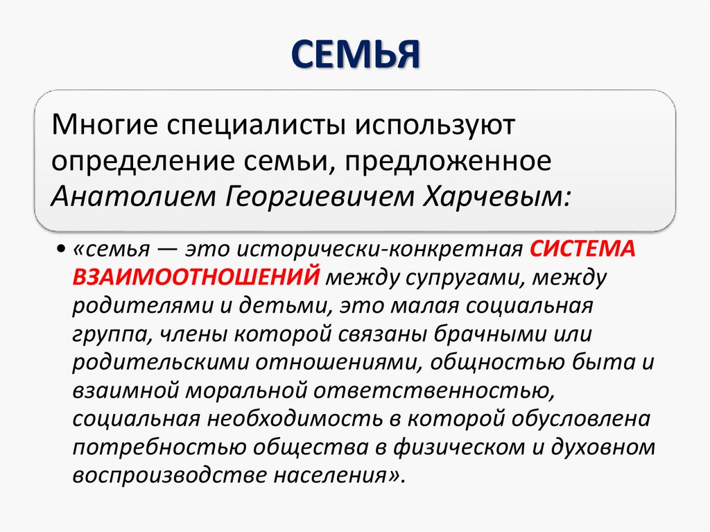 СЕМЬЯПонятие «семья» предназначено для характеристики сложной СИСТЕМЫ