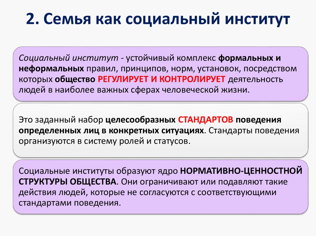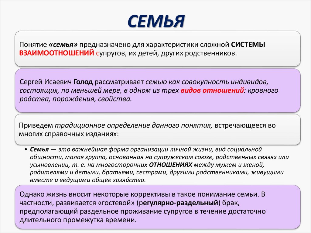 • Семья — это важнейшая форма организации личной жизни, вид социальной