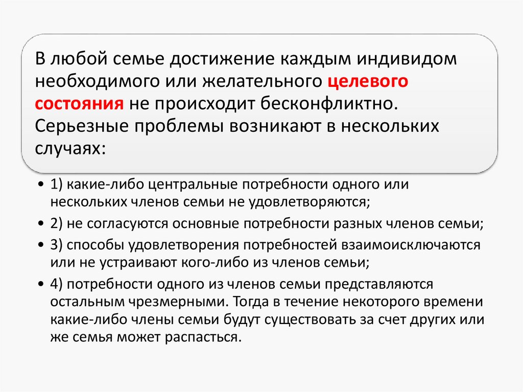 В любой семье достижение каждым индивидомнеобходимого или желательного целевого