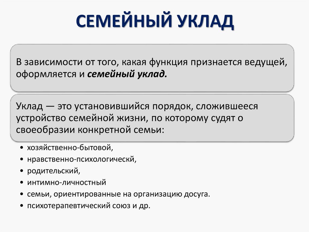 СЕМЕЙНЫЙ УКЛАДВ зависимости от того, какая функция признается ведущей,