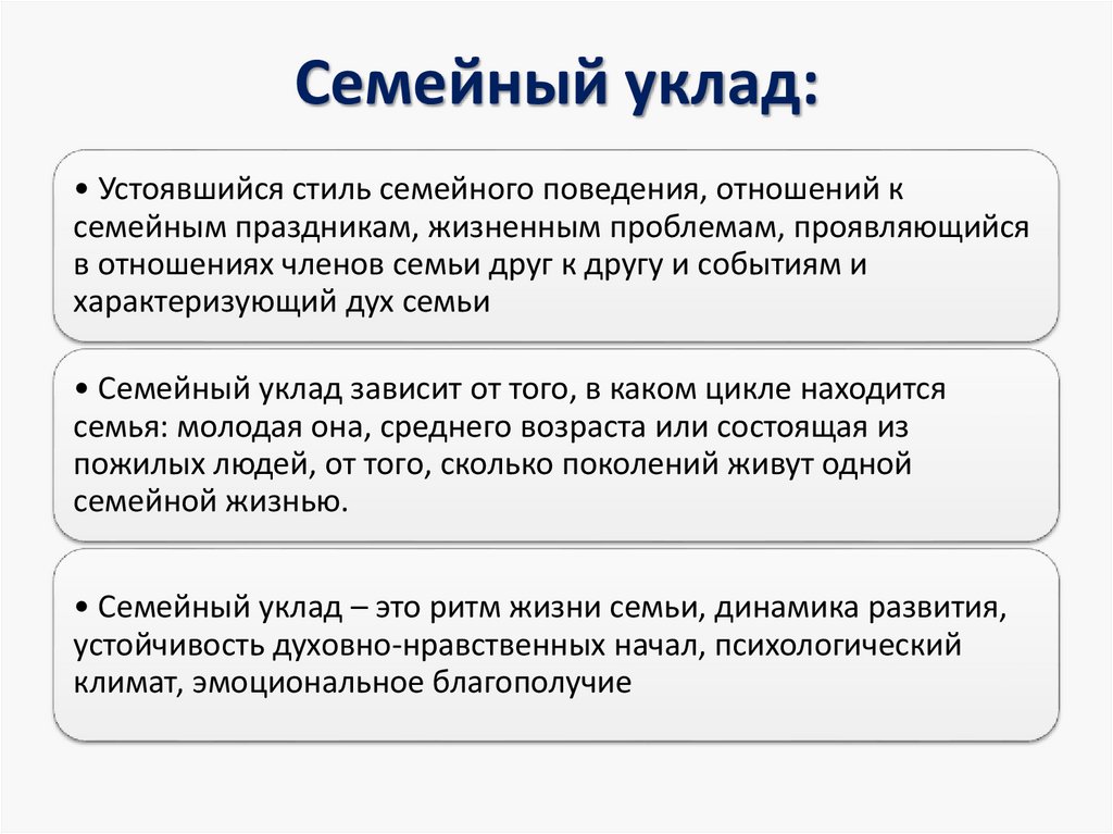 • Семейный уклад – это ритм жизни семьи, динамика развития,