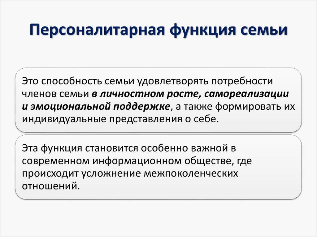 Именно персоналитарная функция, наряду с другими, делает семью уникальной и