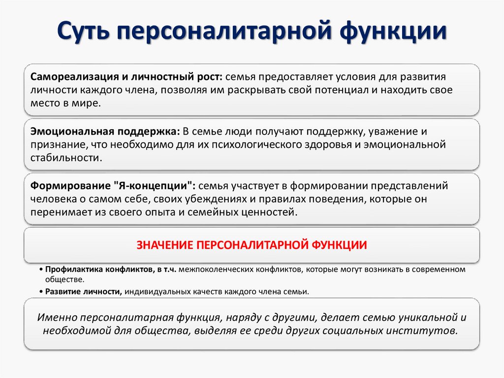 Суть персоналитарной функцииСамореализация и личностный рост: семья предоставляет условия для развития