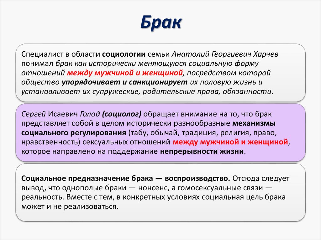 Сергей Исаевич Голод (социолог) обращает внимание на то, что брак