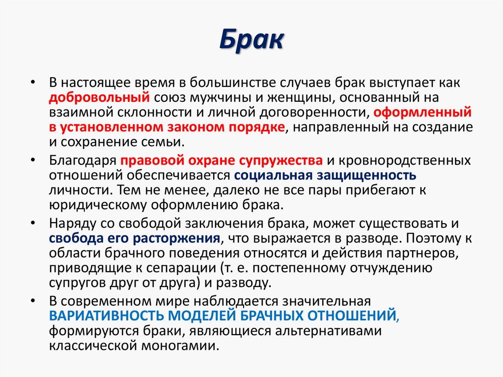 Брак• В настоящее время в большинстве случаев брак выступает как